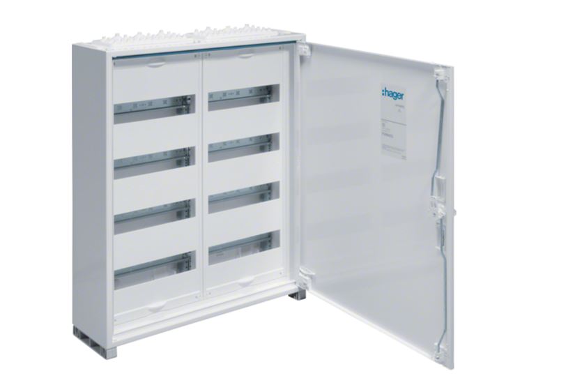 Schutzklasse II schutzisoliert, Schutzart IP 44, für AP-, UP- und teilversenkte Montage, Gehäuse aus 1 mm Stahlblech, RAL 9010, Leitungseinführungen oben und unten, Innenausbau bestehend aus Traggerüst mit Hutschienen und Abdeckungen, je Feld sind PE/N- Schnellsteckklemmen eingebaut
