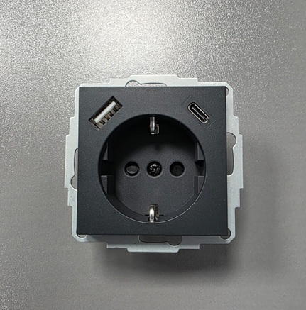 TeMo T&More® Schuko Steckdose anthrazit mit USB Ports, 1x USB-A, 1x USB-C, passend zu Gira 55er Schalterserie (2911137TEM)