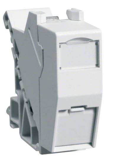 E-DAT modul REG 8(8) IP20 Cat. 6. Universal-Datenanschlusseinheit 1xRJ45 für anreihbare Hutschieneninstallation, Baubreite 1TE (> 18mm) DIN 42880, Schutzklasse I bzw. II je nach Einbauart. Schutzart IP 20 Kategorie 6 geprüfte Ausführung für Datenübertragungsraten bis 10 GBit bis 500 MHz, nach IEEE 802.3an vollgeschirmte Module mit Metallgehäuse aus Zinkdruckguss, Oberflächen vernickelt mit einzelgeschirmten RJ45-Buchsen, Modulgehäuse aus nur zwei Teilen bestehend, großflächiger Schirmanschluss, vom Schirmanschluss getrennte Zugentlastung zum Anschluss von Kategorie 6 und 7-Kabeln Tragrahmen zur Modulaufnahme aus Kunststoff mit Potentialausgleichsfeder (herausnehmbar) Einhaltung der Kategorie 6 12C-de-embedded nach ISO/IEC 11801:2002, EN50173-1:2002 von einem akkreditierten Prüflabor zertifiziert Einhaltung der Permanent-Link Klasse E / 250 MHz auf allen Paarbelegungen nach ISO/IEC 11801:2002, EN50173-1:2002 Einhaltung der EN 55022 Klasse B, EN 50082-1 mit integrierter farbig kodierbarer Staubschutzklappe Metall und Kunststoffteile recyclingfähig, Nachweis des Herstellers ist beizufügen.